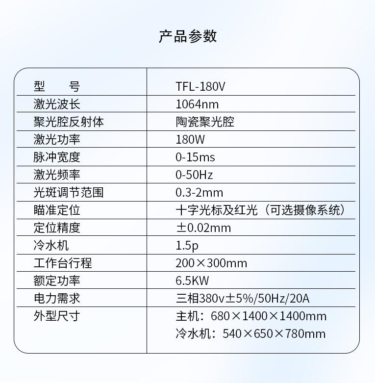 安博(中国)激光焊机TFL-180V/300V既能焊模具又能焊安博官方网页版,应用范围更广;电动工作台,单手操作模具焊接更方便。全中文教导式编程,易学好懂,安博官方网页版自动焊接高效快捷。