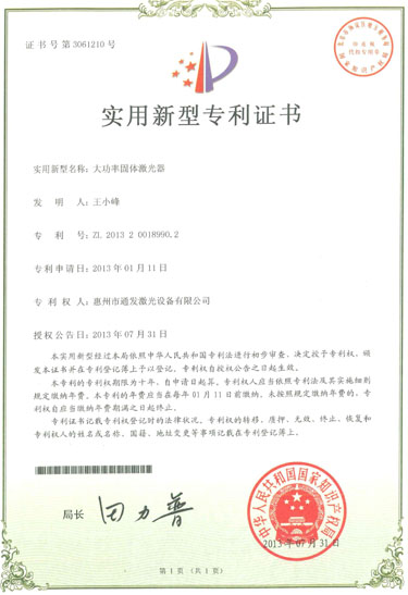 1、激光棒采用新型YAG激光棒,优化了激光棒的参数,使激光光电转换效率提高,并可以增加单点能量。