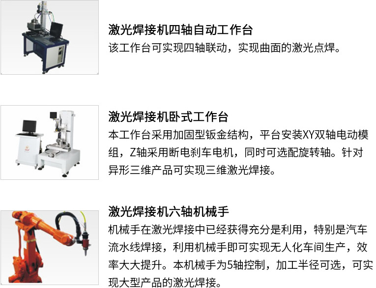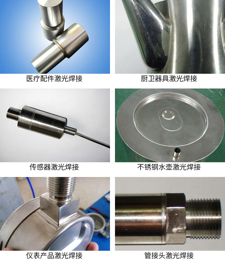 现广泛应用的领域有手机外壳、笔记本电脑外壳、五金构件、厨具卫浴、军工制造、电池外壳、动力电池、仪器仪表、马达、IT手机构件、硅钢片、汽车配件、激光熔覆、医疗器械等精密零件焊接。