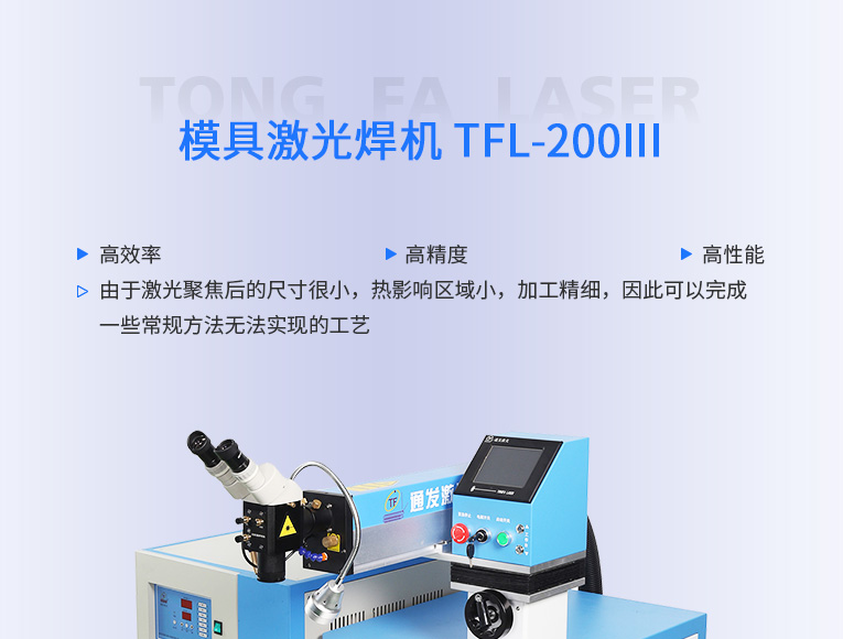 安博(中国)激光国内率先推广国产模具激光焊机,TFL-200Ⅲ升级型世界500强选用,针对精密塑胶模具激光焊、镜面塑胶模具激光烧焊、精密压铸模具激光焊补.为国内模具修复行业做出巨大贡献。