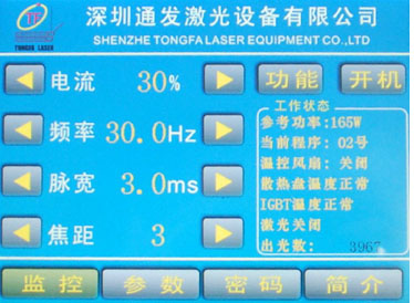 环境湿度:不高于80% 。因为焊机电源打开后,激光晶体就会持续的被冷却系统冷却,因为冷却水一般会低于室温,当环境湿度过大的时候,而激光晶体的温度又低于室温,这时激光晶体的两个端面上会凝结水雾,当激光输出的时候,这些水雾会大大降低激光输出能量,而且这些附着在激光晶体端面上的水,干了以后,会在激光晶体的膜面上留下痕迹,这将会大大加快激光晶体膜面的老化。所以,为了防止这种情况的发生,冷水机的水温设定,夏天不可以低于室温3度,冬天不可以低于5度。
