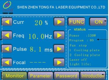 3、 本模具激光焊机,提供了液晶护眼光闸的时间设置,针对不同的脉宽,可设置不同的挡光时间,保护操作工眼睛不受到激光的闪眼不舒服感。