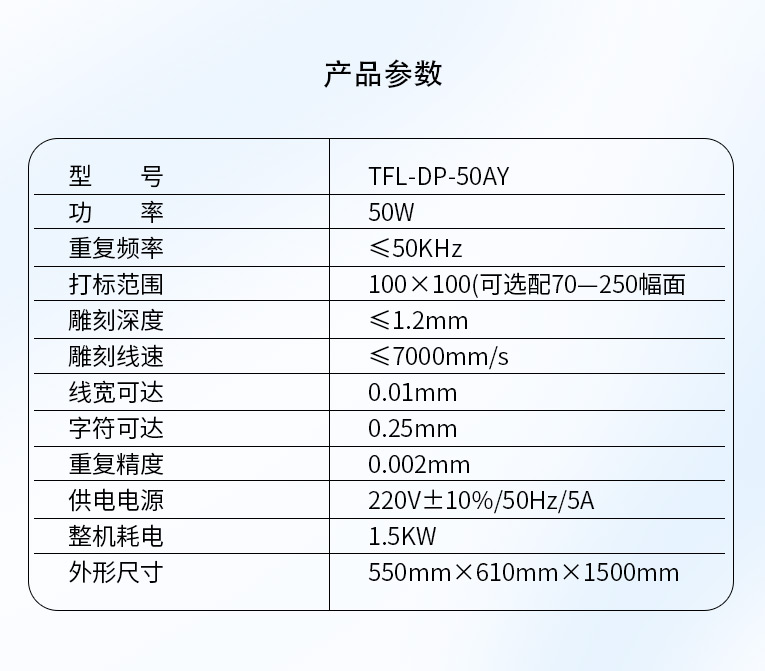 安博(中国)激光研发TFL-DP-50AY激光打标机,可针对各种金属,塑胶进行激光打标加工,本激光镭雕机配置成熟国产激光器,国产振镜、国产软件,性价比高,是普通金属打标机的好选择!!!