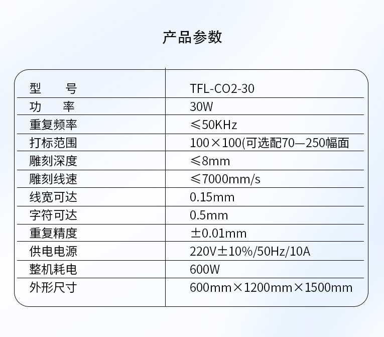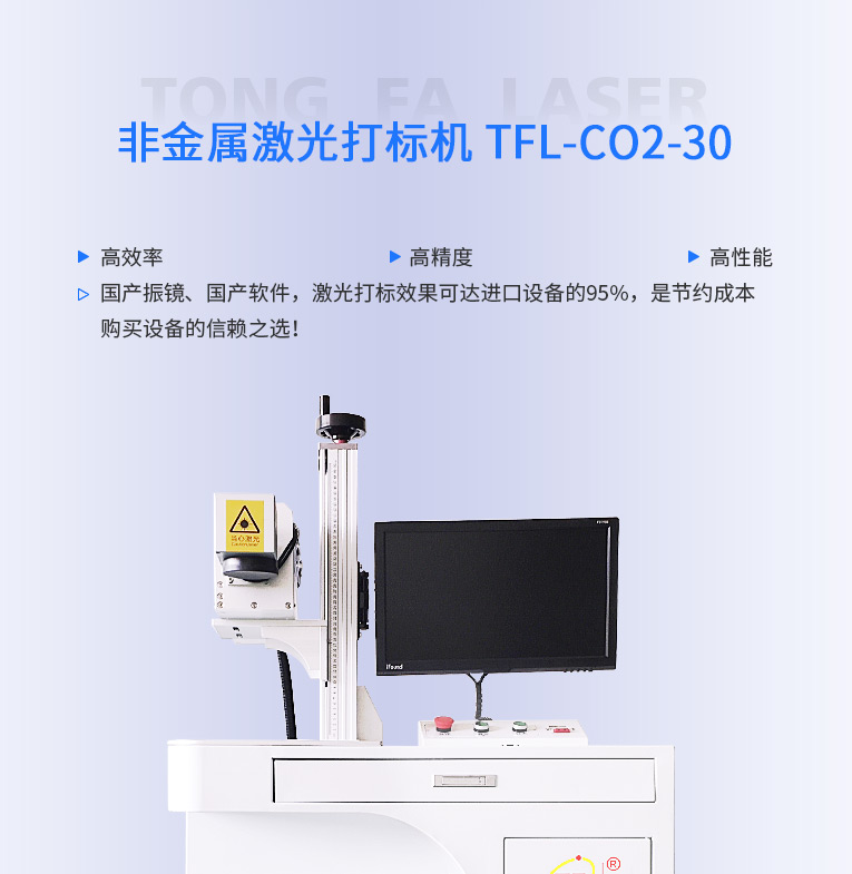 安博(中国)激光研发TFL-CO2-30非金属激光打标机,是皮革激光打标、木材激光打标、石材激光雕刻、硅胶激光镭雕等非金属专用的二氧化碳激光镭雕设备,本二氧化碳激光镭雕机配置进口射频激光器等高端器件,性能稳定!!!