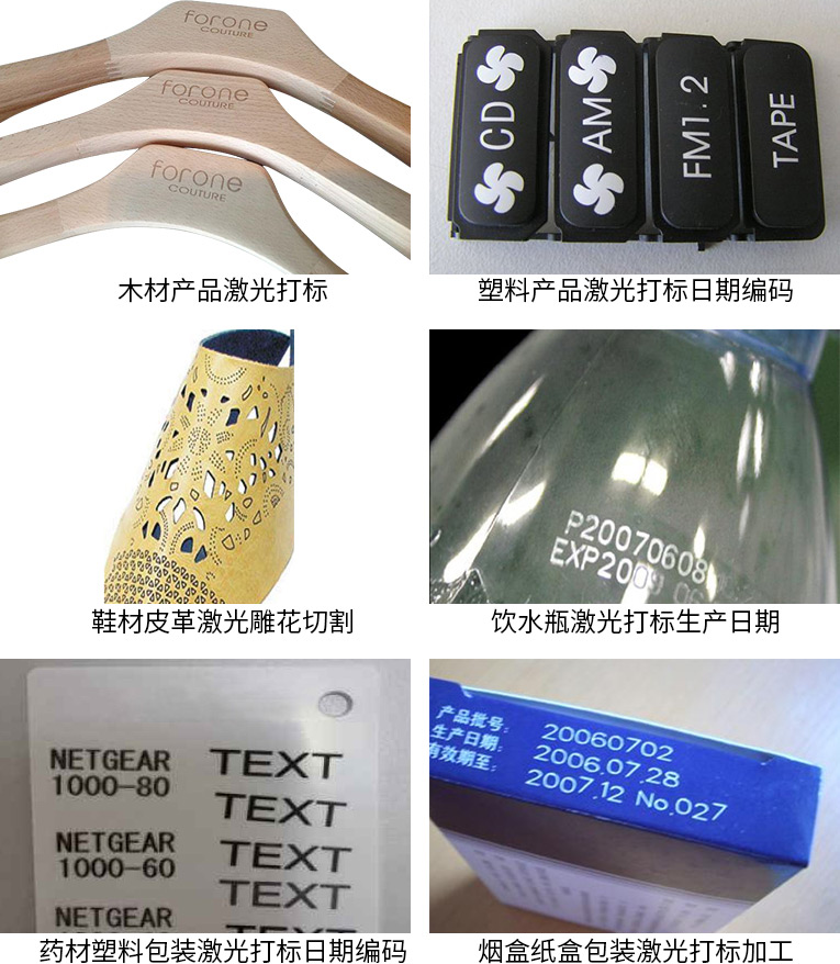 2、应用于医药包装激光打标、建筑石材激光打标、饮料包装在线价格打标日期、橡胶制品激光打标、非金属工艺礼品激光打标、皮革切割打标加工等行业。