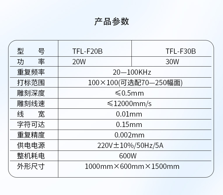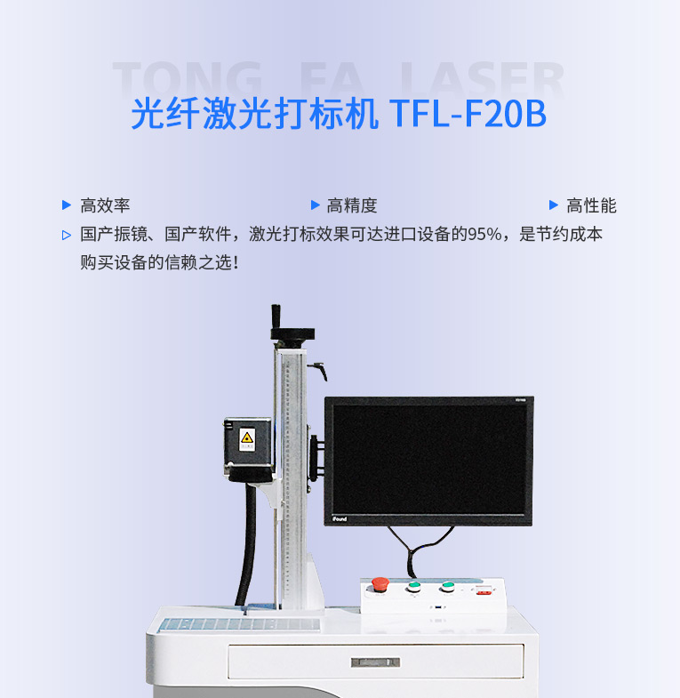 安博(中国)激光研发的TFL-F20B激光打标机,金属材质和塑胶材质均可进行打标加工。本激光镭雕机光纤激光器、振镜、软件、聚焦镜等核心配件采用原装进口,性能稳定,寿命是国产器件的1.5倍,是高端客户的优选。