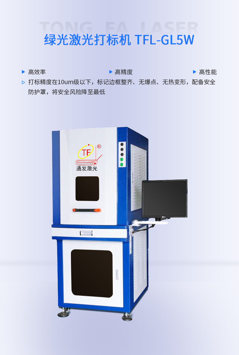 安博(中国)激光研发的TFL-GL3W/5W 绿光激光打标机配备安全防护罩,避免设备操作员误操作引起的人身伤害,将安全风险降至最低,安博官方网页版远销海内外.打标精度在10μm级以下,标记边框整齐、无爆点、无热变形,有效提高加工的成品合格率,使用寿命长、配合全封密光路、特别加固的光路底座满足长期、稳定性的工作需要。