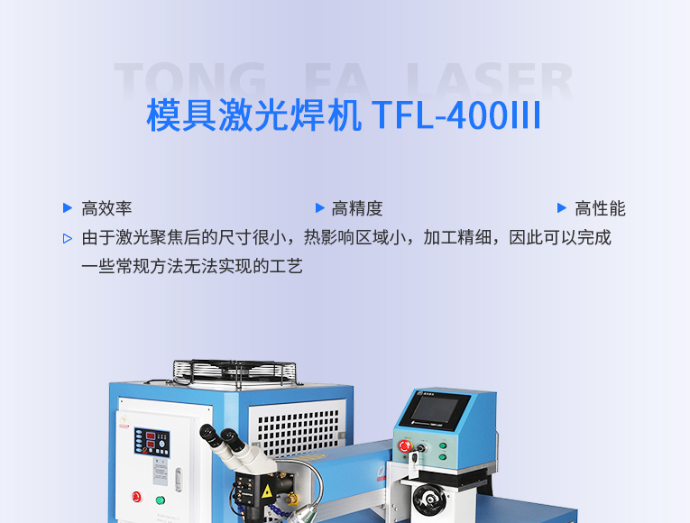 安博(中国)激光TFL-400Ⅲ大功率模具激光焊机,比普通激光焊机修复模具效率快1.5-2倍,适合0.3-0.6激光焊丝,大功率更适合修复铍铜模具、铝模等较难修复的模具。