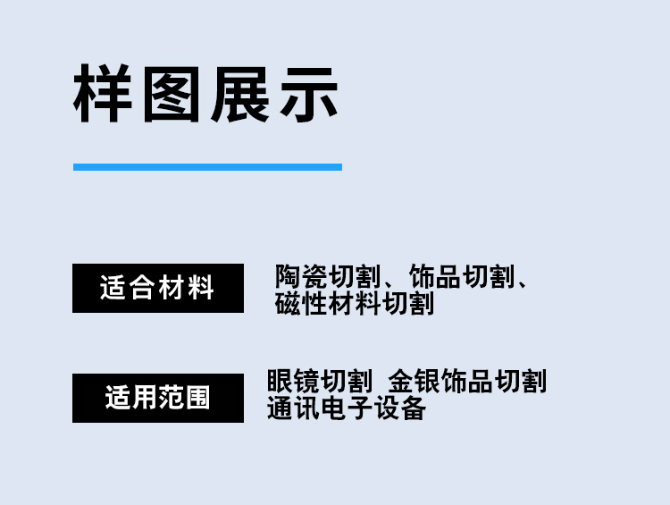 精密小幅面激光切割机TFL-LCP6060精度高,重复性好,不损伤材料表面,适用于眼镜切割、陶瓷切割、饰品切割、磁性材料切割;切缝成型不发黑,光滑平整,板材成型切口无需人工再处理。
