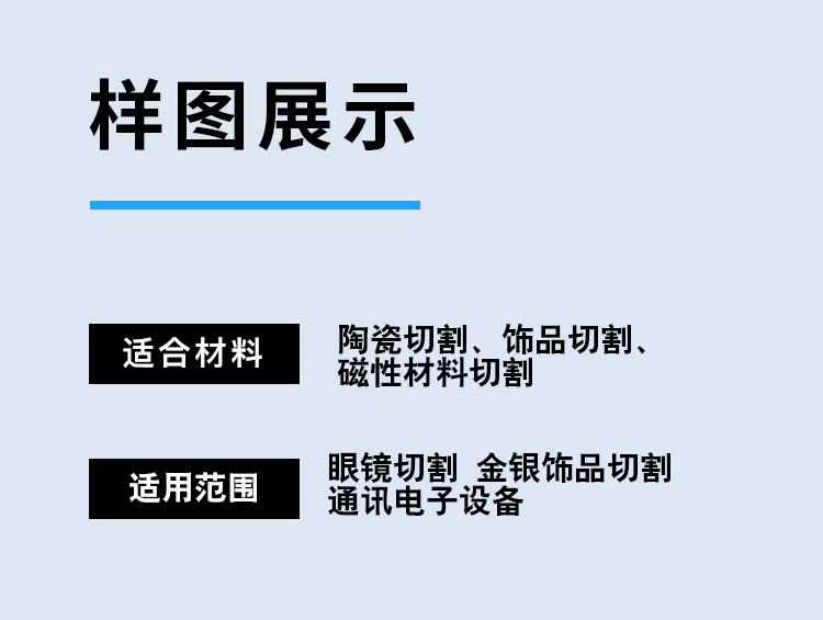 精密小幅面激光切割机TFL-LCP4060精度高,重复性好,不损伤材料表面,适用于眼镜切割、陶瓷切割、饰品切割、磁性材料切割;切缝成型不发黑,光滑平整,板材成型切口无需人工再处理。
